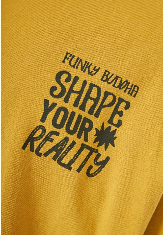 Ανδρικό t-shirt με εντυπωσιακό τύπωμα στην πλάτη που αποπνέει δυναμισμό και στυλ. Κατασκευασμένο από 100% οργανικό βαμβάκι, χαρίζει απαλή αίσθηση και άνεση όλη μέρα. Η relaxed γραμμή του εξασφαλίζει ελευθερία κινήσεων. Απόλαυσε την απόλυτη casual άνεση με Funky Buddha. Συνδύασε το με τζιν και sneakers για ένα cool και χαλαρό look.