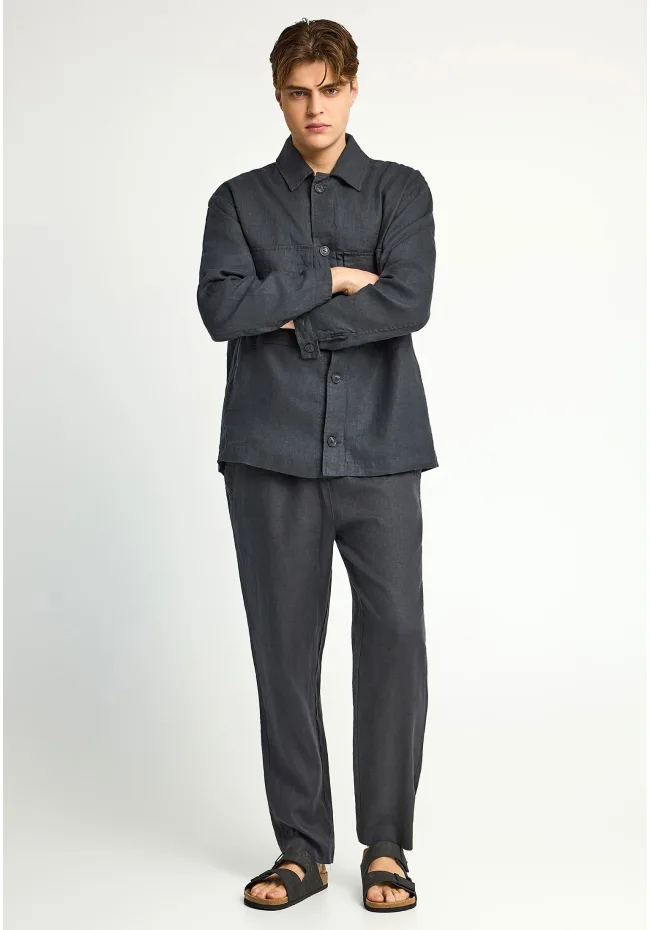 Ανδρικό comfort fit λινό chino παντελόνι- ANTHRACITE