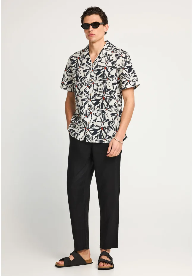 Ανδρικό comfort fit λινό chino παντελόνι- BLACK