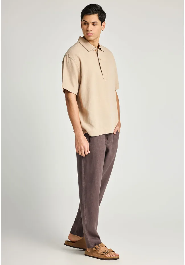 Ανδρικό comfort fit λινό chino παντελόνι-MOON MIST