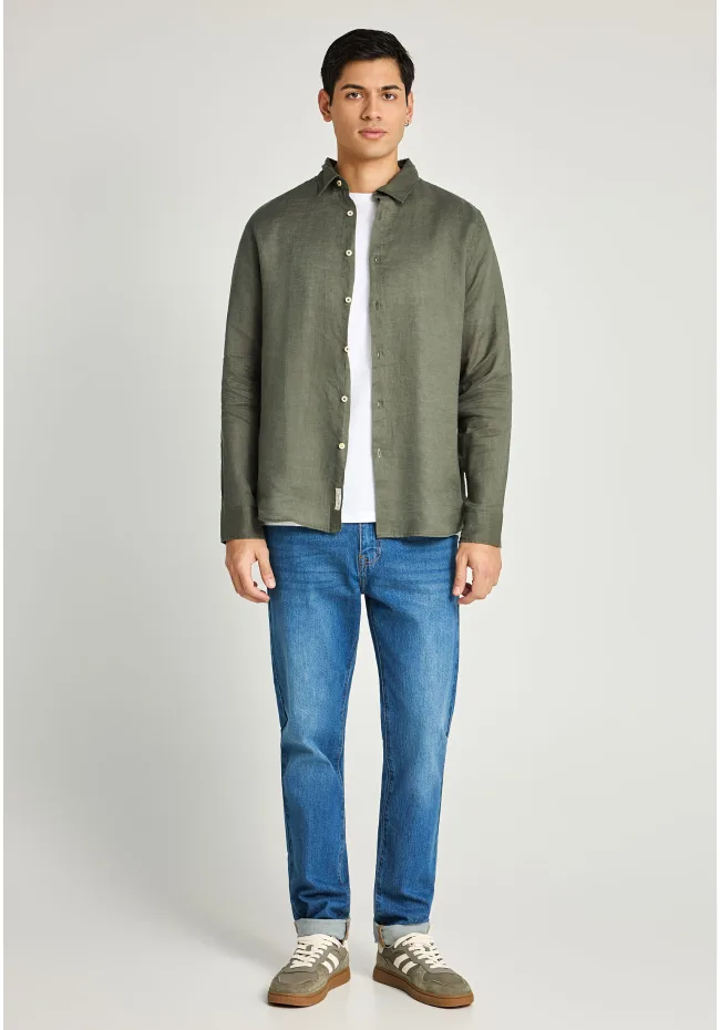 Ανδρικό λινό πουκάμισο- DEEP FOREST