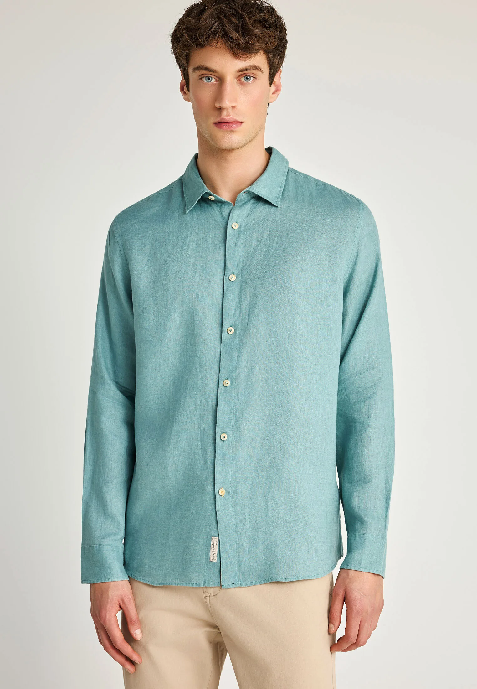 Ανδρικό λινό πουκάμισο – the essentials. Ένα διαχρονικό κομμάτι, φτιαγμένο από 100% λινάρι, με άνετη regular fit γραμμή, που θα αναδείξει το στυλ σου σε κάθε περίσταση. Η φυσική άνεση και η απαλή αίσθηση του λινού υφάσματος το καθιστούν ιδανικό για τις ζεστές μέρες, ενώ η ευελιξία του σου επιτρέπει να το φοράς από το πρωί στην δουλειά μέχρι το βράδυ σε μια χαλαρή έξοδο. Ένα ρούχο από την Funky Buddha που συνδυάζει την πρακτικότητα με την κομψότητα. Συνδύασε το με chino παντελόνι και sneakers για ένα casual look ή με tailored παντελόνι και loafers για ένα πιο polished outfit.