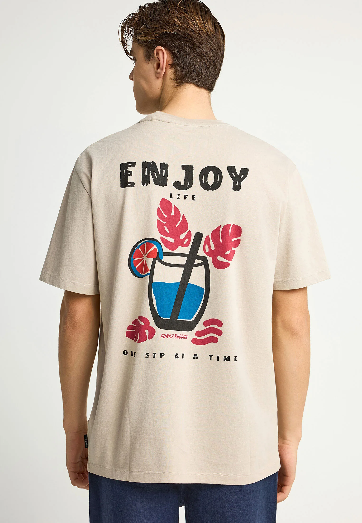 Ανδρικό relaxed t-shirt από 100% βαμβάκι, ιδανικό για κάθε μέρα. Η άνετη γραμμή του συνδυάζεται άψογα με το εντυπωσιακό τύπωμα στην πλάτη, προσδίδοντας μια χαλαρή αλλά ταυτόχρονα statement εμφάνιση. Φόρεσε το με το αγαπημένο σου τζιν ή chino για ένα cool και άνετο look με την υπογραφή Funky Buddha.