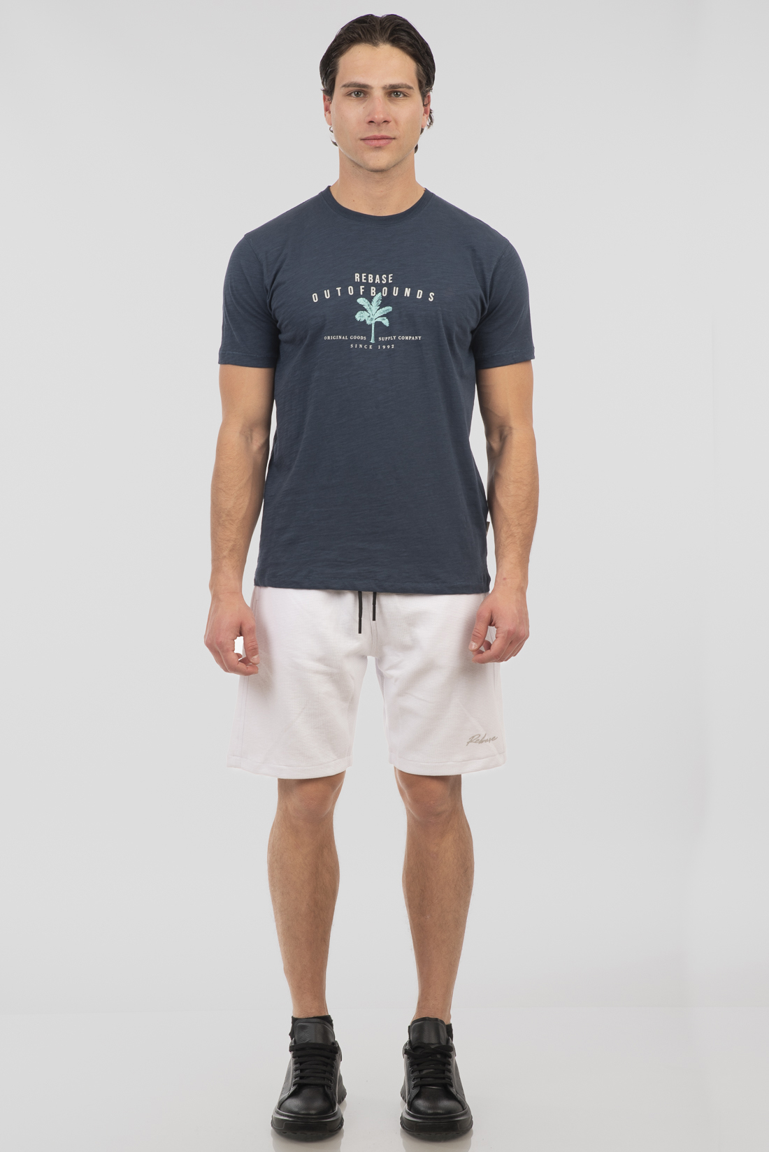 Ανανέωσε το casual στυλ σου με αυτό το ανδρικό t-shirt με στάμπα σε μοντέρνα απόχρωση Midnight Blue, από τη συλλογή της Rebase. Κατασκευασμένο από 100% βαμβάκι Flama, προσφέρει εξαιρετική άνεση, διαπνοή και απαλή υφή στο δέρμα.