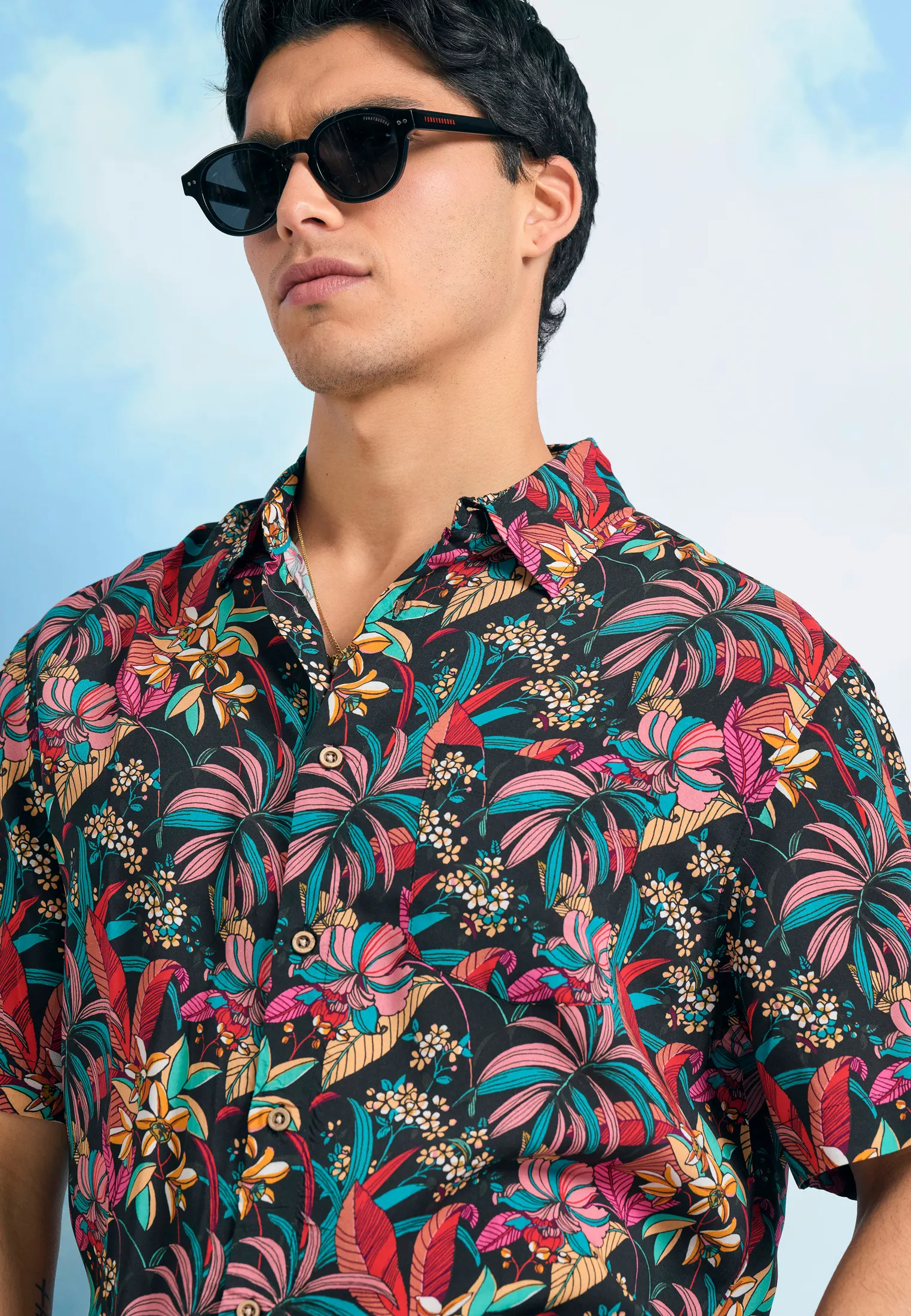 Relaxed fit resort πουκάμισο με φλοράλ τύπωμα – Black – Funky Buddha