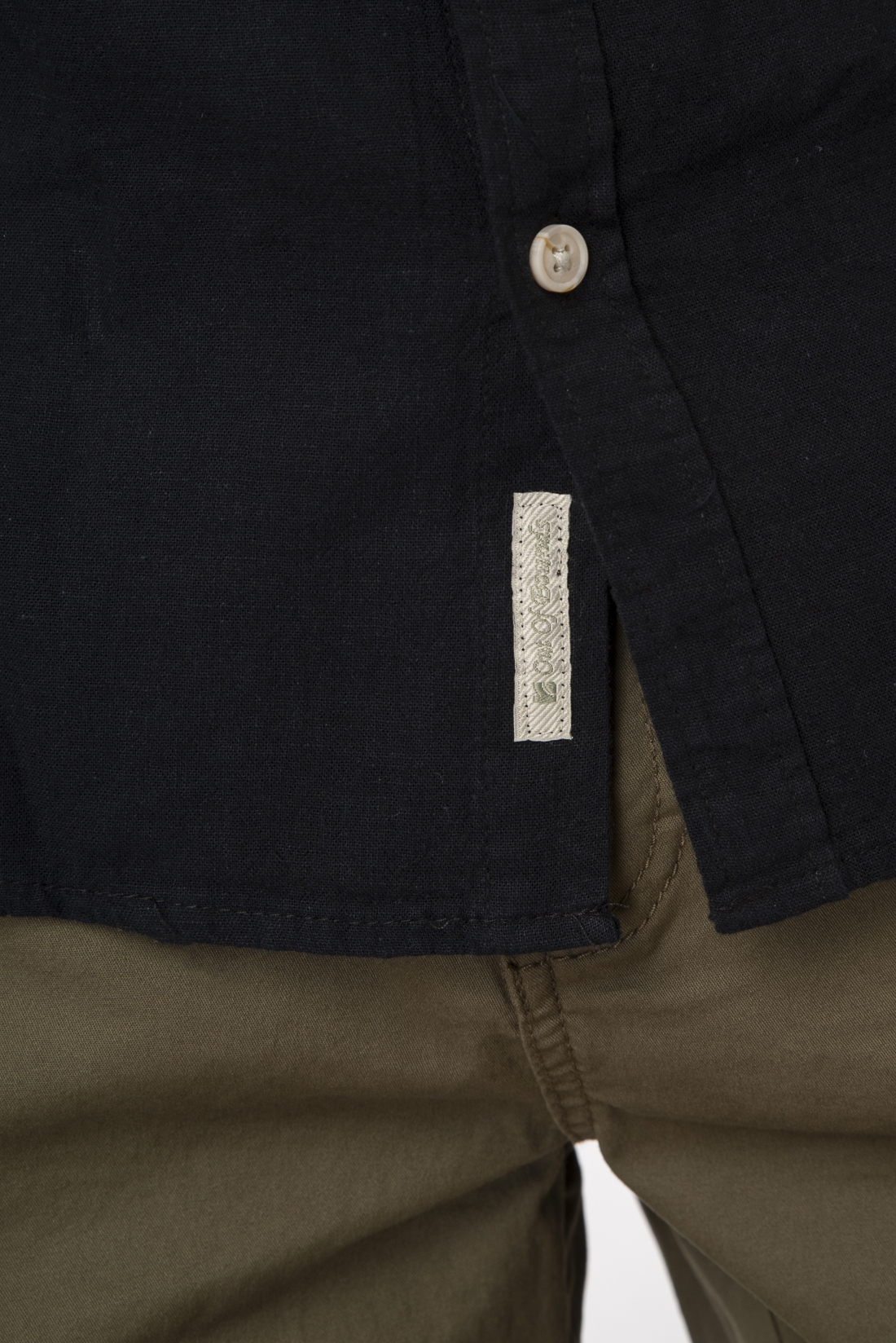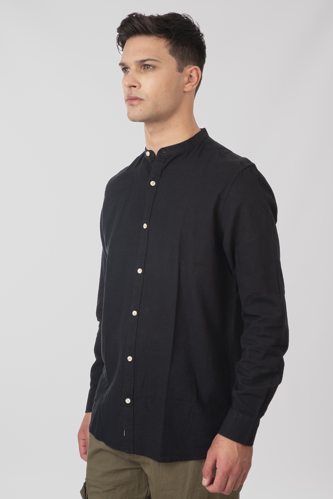 Shirts Linen Blend with Mao Collar and Long Sleeves – Black – Rebase