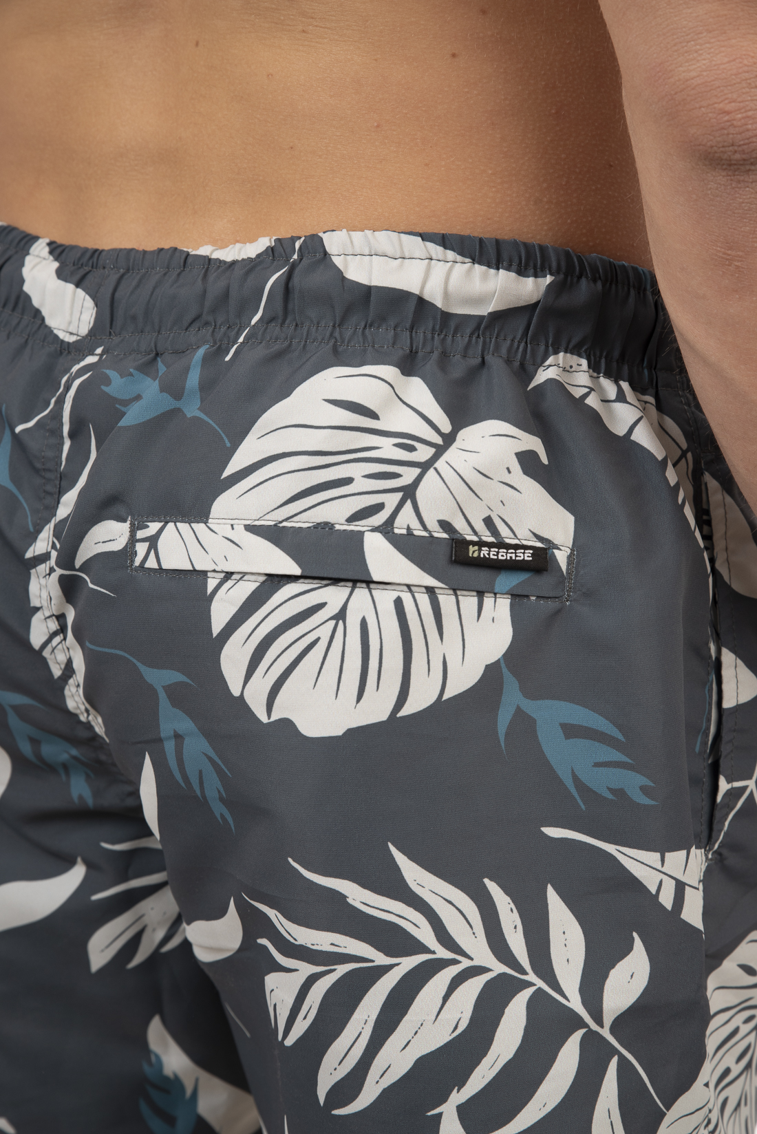 Swim Shorts in Floral Print – Stone Grey – Rebase