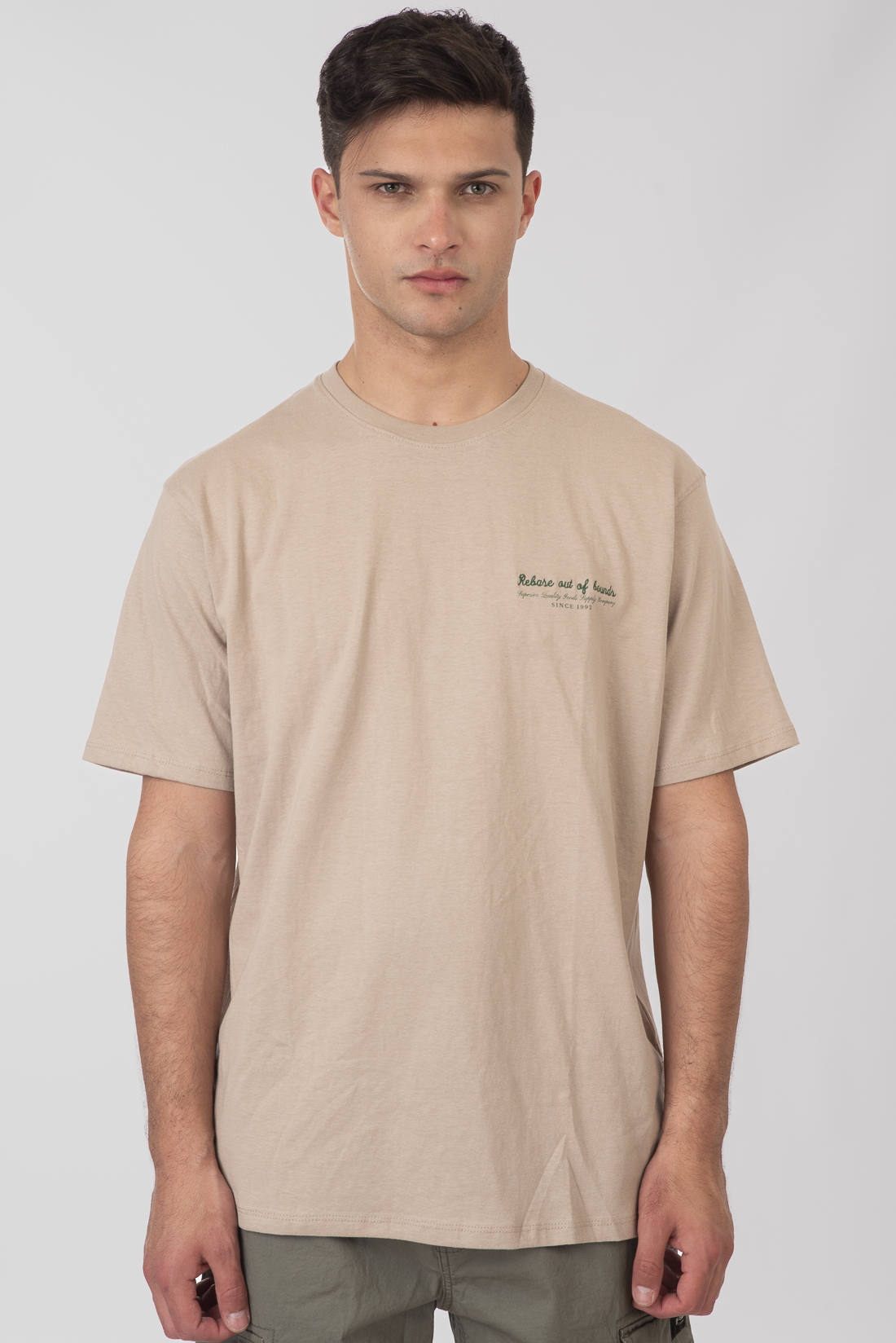 T-Shirts with Embroidery and Print Relaxed Fit (Heavy Jersey) – Greige – Rebase